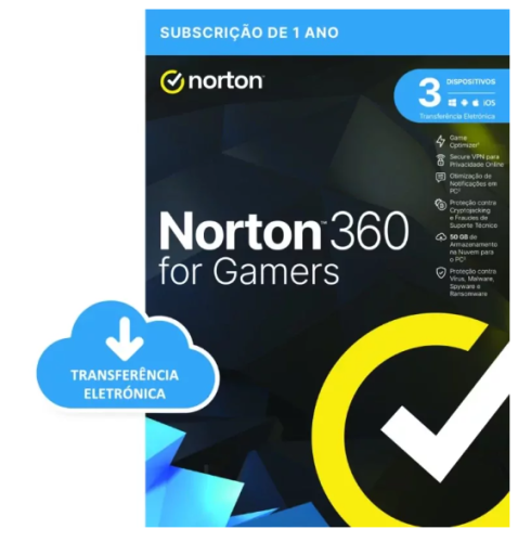 NORTON 360 FOR GAMERS ESD 50GB PO,1 Utilizador,3 Dispositivos licença de 12 Meses 21433239