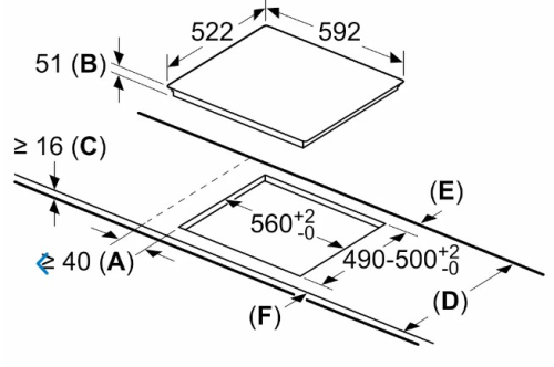 Dimensões de instalação necessárias (A x L x P) 51 x 592 x 522 mm