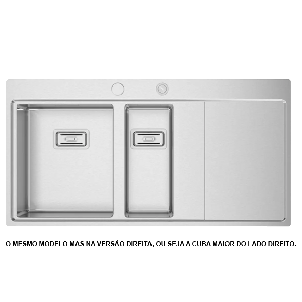 Medida Externa: 1000x520mmMedida da Cuba: 340X400 170X400mmProfundidade: 200 170mmMóvel: 600mmAcabamento: EscovadoAplicação: À face e superiorVersão: EsquerdaInclui: Sifão válvula automática FIRST