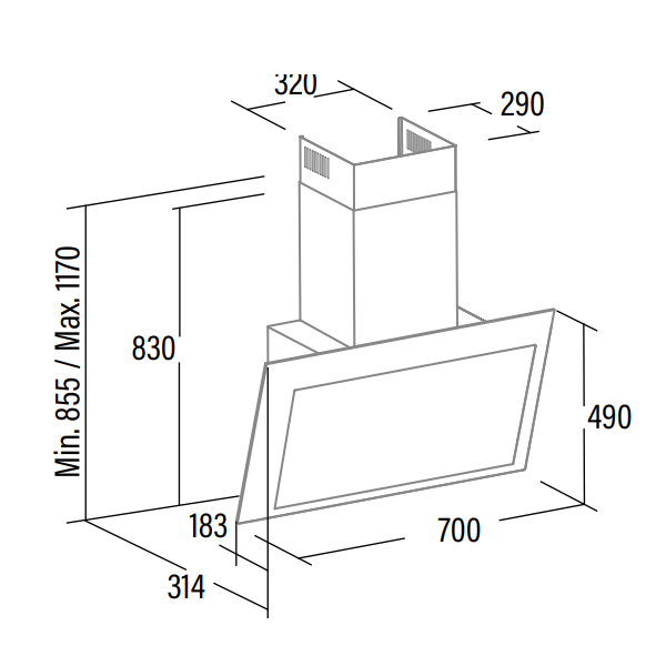 Dimensões (axlxp) min-máx 855-1170x700x314mm > chaminé parede39490NovoProduto Limitado€ 394.90