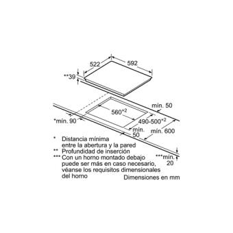 Dimensões (a, L, P) 39 X 592 X 522 Mm - Balay