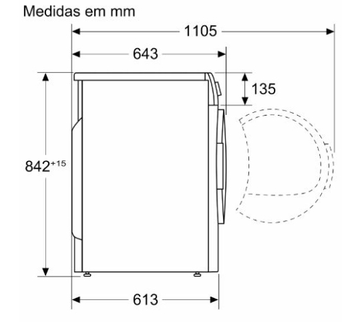 Profundidade com porta aberta a 90 graus 1105 mm