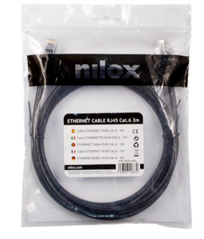 Nilox NXCRJ4502. Comprimento do cabo: 2 m. Categoria do cabo: Cat6. Isolamento do cabo: U/UTP (UTP). Conetor 1: RJ-45. Conetor 2: RJ-45. > adaptadores e cabos290NovoProduto disponívelNilox NXCRJ4502. Comprimento do cabo: 2 m. Categoria do cabo: Cat6. Isolamento do cabo: U UTP (UTP). Conetor 1: RJ-45. Conetor 2: RJ-45.