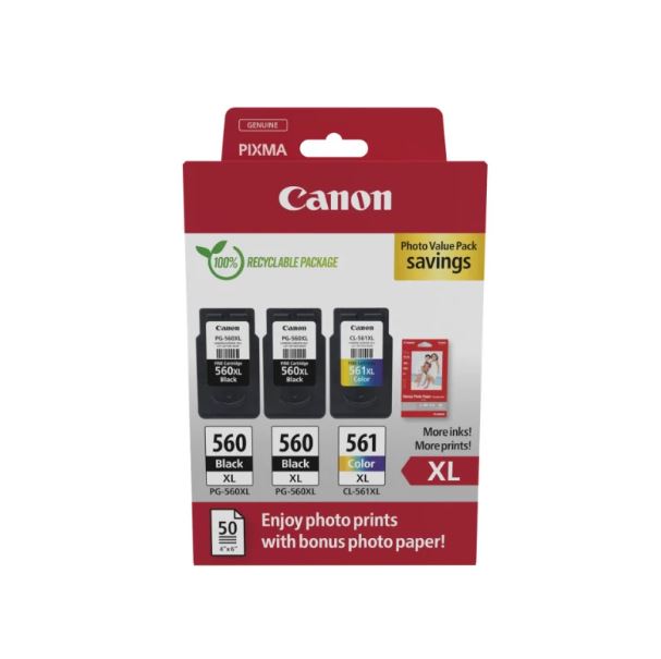EMBALAGEM ECONÓMICA DE 2 TINTEIROS CANON PG-560XL/1 TINTEIRO CANON CL-561XL + PAPEL FOTOGRÁFICO