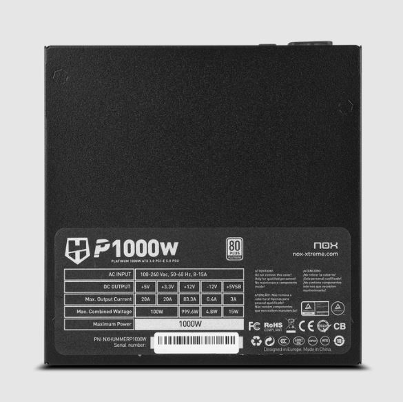 A Nox Hummer P 1000W Platinum Edition foi concebida para uma montagem rápida e limpa em equipamentos de alto desempenho. A sua cablagem é totalmente modular, facilitando a montagem e proporcionando uma gestão adequada do interior do chassis, mantendo o equipamento à temperatura correta, favorecendo o fluxo de ar. É também uma fonte de alimentação para PC com proteções OVP, SCP, OPP e UVP que garantem um funcionamento seguro em diferentes circunstâncias.