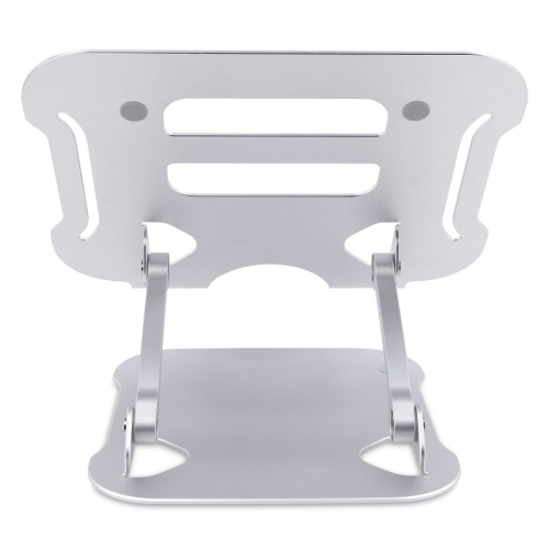O riser do laptop possui acabamento anodizado prateado com construção em alumínio para garantir durabilidade e robustez. A área de superfície ventilada é elevada para promover resfriamento passivo e fluxo de ar. O espaço abaixo da plataforma do laptop pode ser usado para armazenar teclado, mouse e ou outros acessórios e periféricos quando não estiverem em uso.