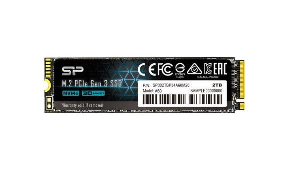 Silicon Power P34A60. Capacidade da drive SSD: 2 TB, Fator de forma SSD: M.2, Velocidade de leitura: 2200 MB/s, Velocidade de escrita: 1600 MB/s.