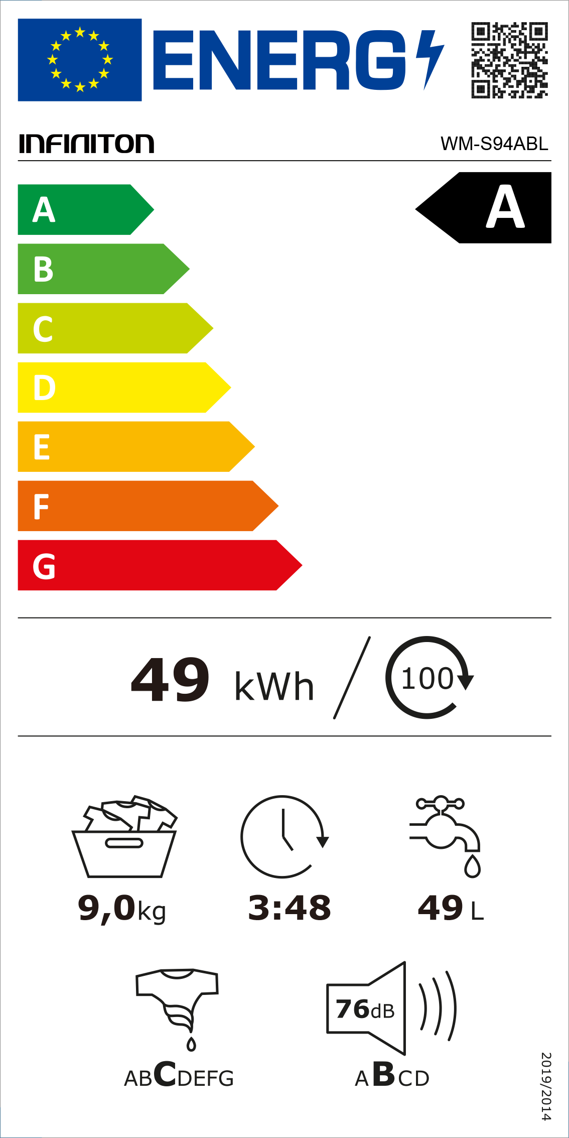 Consumo energético anual: 0,49 kWh/ano