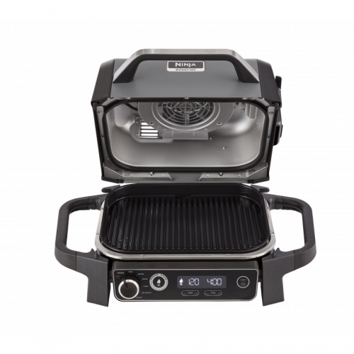 Ninja Woodfire Outdoor Grill. Cor do produto: Preto, Material do corpo do produto: Metal, Plástico, Aço inoxidável, Forma: Retangular. Potência: 2400 W. Comprimento do fio: 2 m, Largura: 460 mm, Profundidade: 460 mm