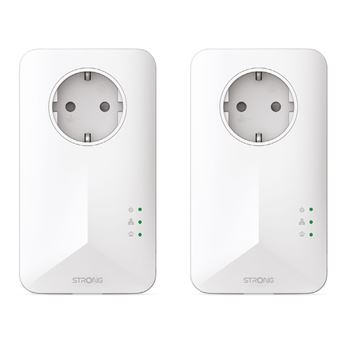 Strong PowerLine 1000 Kit. Taxa máxima de transferência de dados: 1000 Mbit s, Normas de Comunicações: IEEE 802.3, IEEE 802.3u, Tipo de interface de ethernet LAN: Gigabit Ethernet. Voltagem de entrada AC: 100 - 240 V, Frequência de entrada AC: 50 60 Hz, Corrente: 16 A. Cor do produto: Branco. Largura: 76 mm, Profundidade: 80 mm, Altura: 136 mm. Quantidade por conjunto: 2 unidade(s), Cabos: LAN (RJ-45)