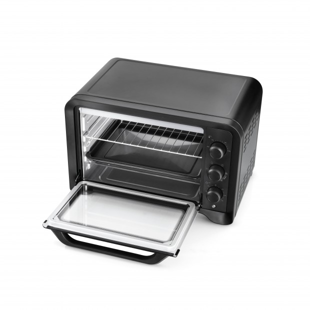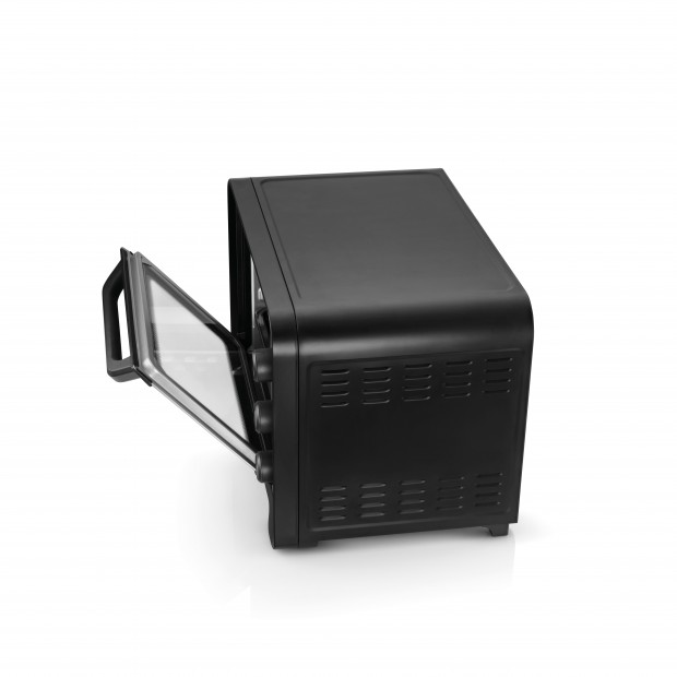 Equipado com um seletor de temperatura, tempo e ainda 6 funções, o mini forno oferece total controlo sobre o processo de cozedura, adaptando-se facilmente às necessidades de cada prato. O temporizador até 60 minutos permite cozinhar sem preocupações, enquanto a iluminação interior proporciona uma melhor visibilidade durante o preparo. Com uma temperatura ajustável entre 100º e 230ºC e porta com vidro duplo, este pequeno forno elétrico garante segurança e eficiência energética.