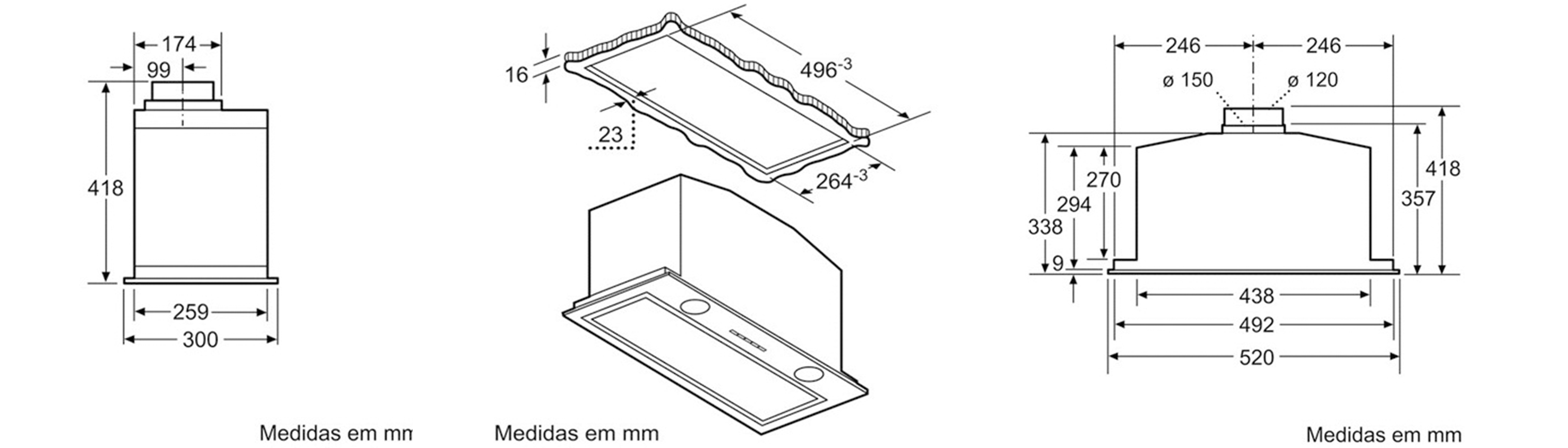 Largura do produto: 520 mm, Altura da Unidade: 418 mm, Profundidade da Unidade: 300 mm