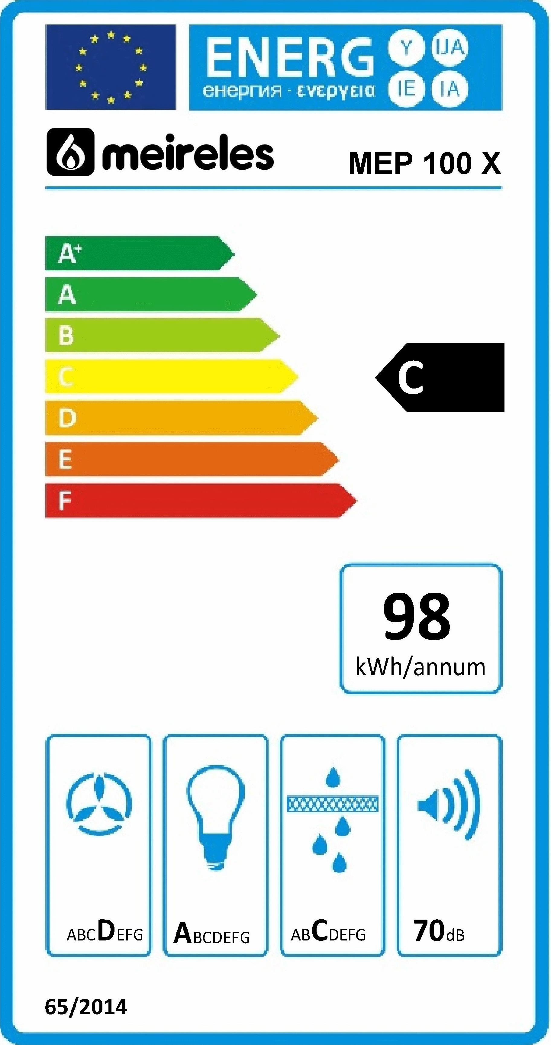 PRINC. CARACTERÍSTICAS: Cor: InoxEfic. Energ.: CLargura: 100 cmPot. Exaustão: 580 m3 hInstalação: ParedeNível Ruído: 70 dB(A)