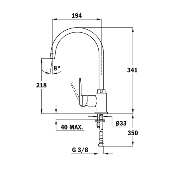 o do produtoMono-comando para lava-louças, com canhão e filtroCartucho de discos cerâmicosTubos de alimentação flexíveisCor: CROMADA