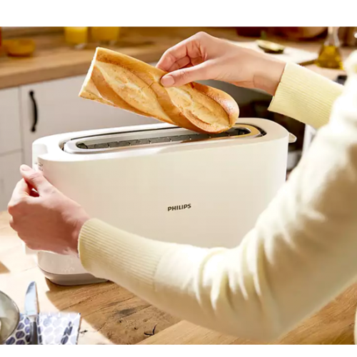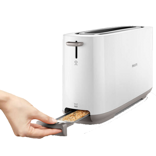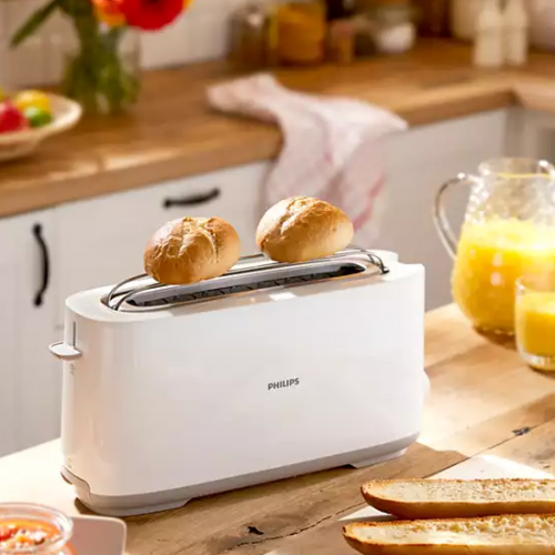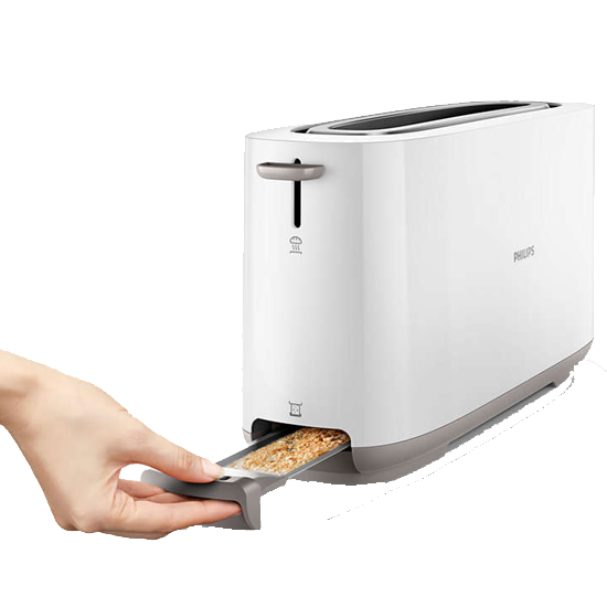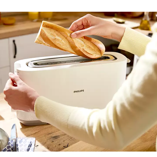 Torradeira com abertura comprida com 8 definições para resultados uniformes e dourados independentemente do que tostar ou de como desejar.