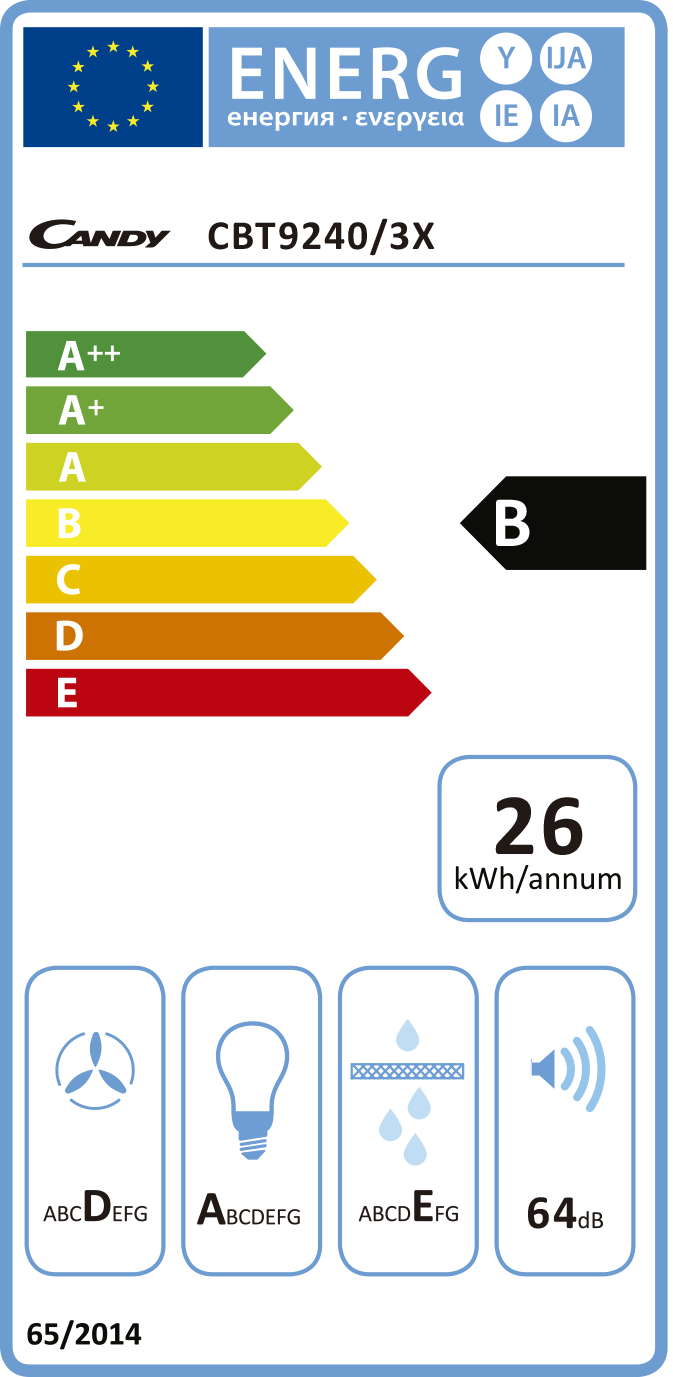 Aspiração/Extracção: 371 m3/horaEf. fluído dinâmica: F Ef. iluminação: G Ef. filtragem gordura: D Nº de Velocidades: 3 Classe Energética: E Consumo: 144 kWh/anoNº de Motores: 1 Nº de Lâmpadas: 1 x 3 W Filtro: Metálico Nível de Ruído: 65 dBAltura: 17,6 cmLargura: 90 cmProfundidade: 42,5 cmCor: Inox Garantia: 2 anos- > gaveta13590NovoProduto disponível€ 135.90