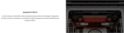 Função SteakMaster com grill especial, programas automáticos e grelha de ferro fundido exclusiva