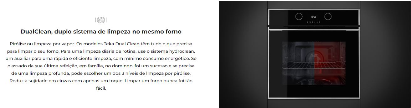 Sistema de limpeza DualClean: Auto limpeza pirolítica (3 níveis) + Teka Hydroclean® PRO automático