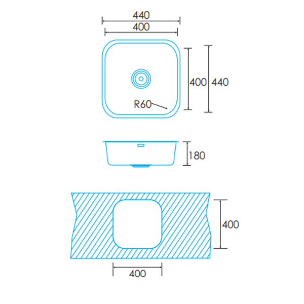 Características:Cuba quadrada