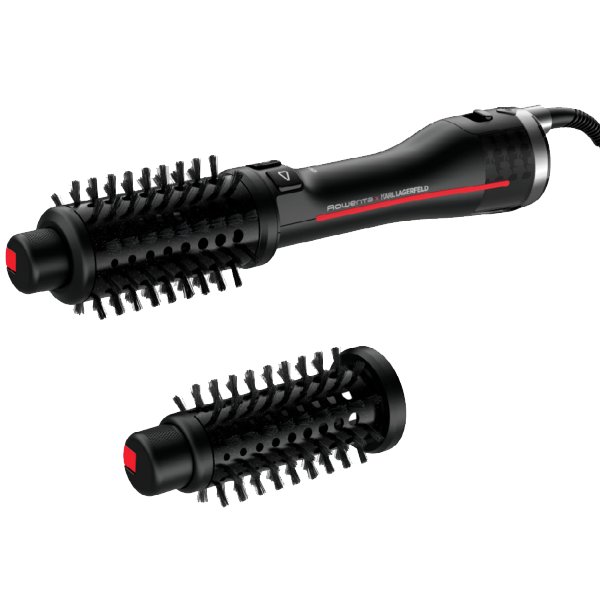 Duas escovas de cerâmica: uma escova rotativa de 50 mm para cabelos longos/grossos e uma escova rotativa de 40 mm para cabelos médios e curtos.