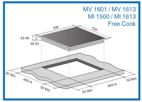 Placa Vitroceramica MEIRELES MV 1607 Encastre 7000W 4 Zonas 60m