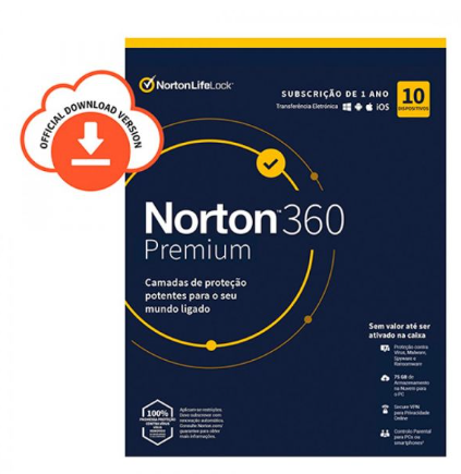 NORTON 360 PREMIUM Antivirus 75GB PO 1 Utilizador 10 Postos 12 meses GENERIC RSP MM GUM 21429423