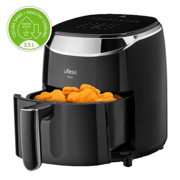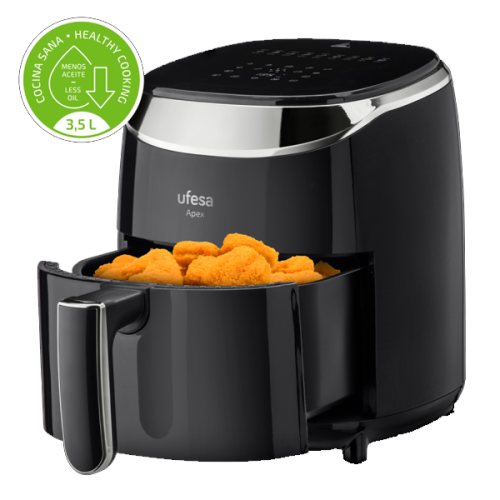 UFESAFritadeira UFESA Air Fryer Apex 3,5L 72805367Fritadeira UFESA  Air Fryer Apex 3,5L 72805367Fritadeira UFESA Air Fryer Apex 3,5L 72805367 Suas receitas mais saudáveis ​​com a fritadeira Apex e sua tecnologia de circulação de ar de alta velocidade 360º. Com a sua capacidade de 3,5L é ideal para famílias de 3 pessoas. Você poderá cozinhar uma infinidade de receitas e da maneira mais fácil, pois também possui 9 programas predefinidos para batatas fritas, carne, peixe, frango, panificação, legumes e muito mais. Graças à sua tigela e bandeja antiaderentes, a limpeza será muito fácil, e você também pode lavá-lo na sua máquina de lavar louça. > air fryer7890NovoProduto disponível