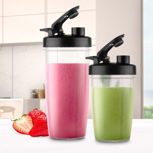Acessórios 6 em 1: copo de 0,8L, copo de 0,5L, moedor, tampa para bebidas esportivas e tampa padrão