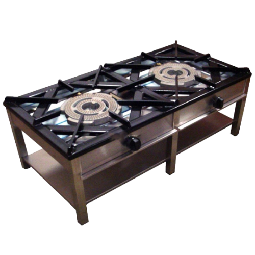 Fabricado em aço inox com sistema de segurança | Grelhas em ferro | Pés reguláveis | Tabuleiro inox de recolha de resíduos | Preparados para GPL e GN (kit conversão incluído) | Dimensões: 1200x600x500 | Tipo de queimador: 2x Alto Rendimento 255mm | Potência do queimador: 2x 9.5kW | Potência total: 19 kW | Consumo: GPL 1500g/h - GN 2 m3/h > cozinha hotelaria89890NovoProduto disponível€ 898.90