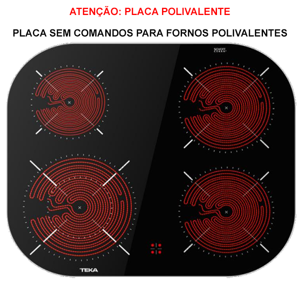 Placa Vitroceramica Moldura Inox TEKA TCC64000PLVBK Encastre 6900W 4 Zonas 60Cm (Nota, placa sem comandos. É controlada através do forno compatível)