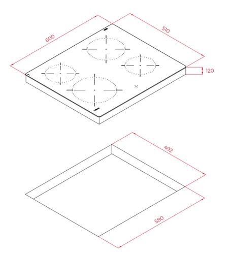 Largura de encastre (mm): 580
