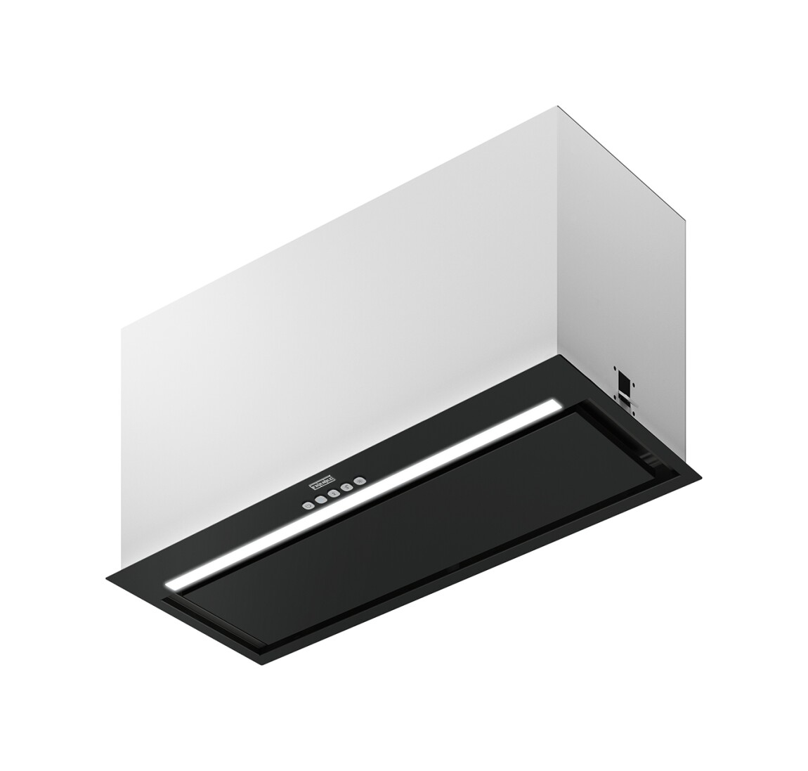 A coifa Franke FBFE BK MATT A70 da série Box acabamento preto fosco com cristal preto está equipada com potência de 250 W, controles eletrônicos, iluminação LED, vazão de 570 m³ h, filtros cassete de alumínio e classe de eficiência energética B.