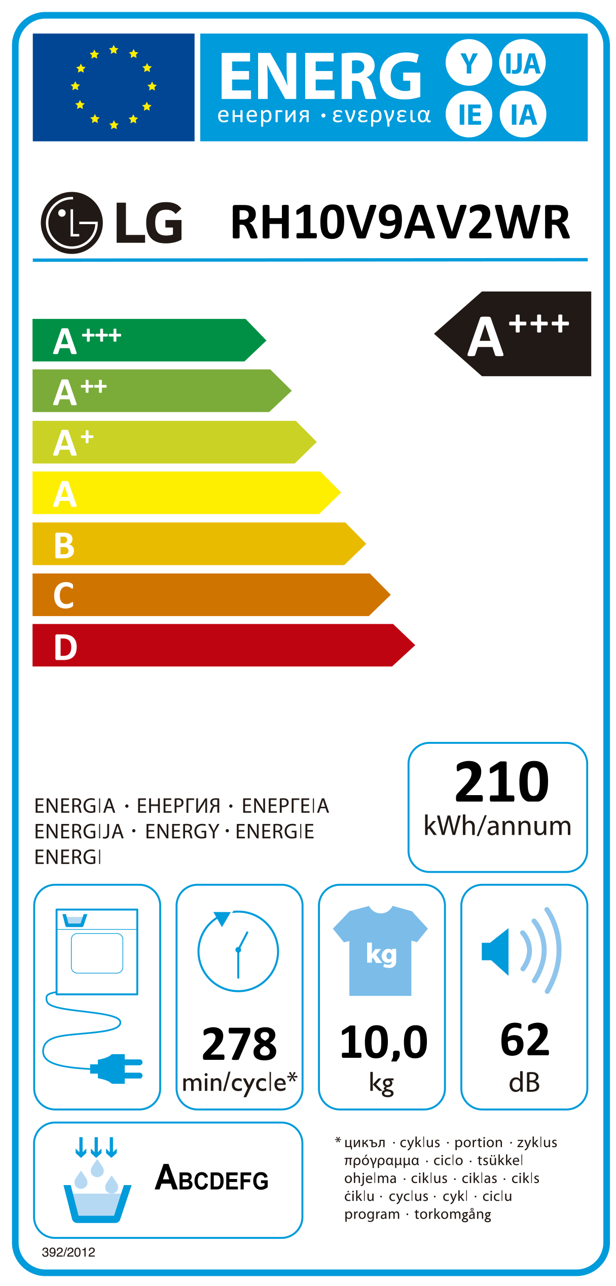 Máquina de secar roupa LG RH10V9AV2WR, 10Kg, Eficiência Energética A+++, Condensação por bomba de calor.