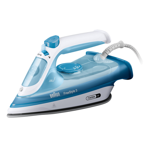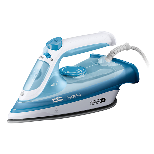 Braun FI 3144 BL. Tipo: Ferro a seco e a vapor, Tipo de base de ferro: Base de cerâmica, Comprimento do fio: 2 m. Potência: 2400 W. Largura: 290 mm, Profundidade: 120 mm, Altura: 140 mm.