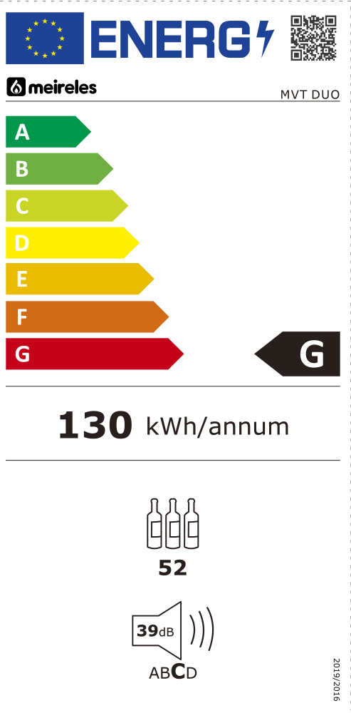 Garrafeira MEIRELES MVT DUO Cor Preto 127LT 83.5 x 59.6 x 49.5 cm Classe G