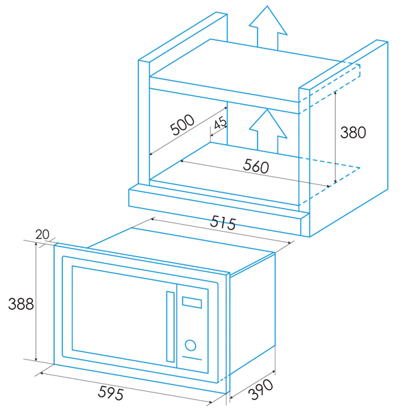 Micro ondas de encastre de 25 litros, 900W e com grill 1000W |