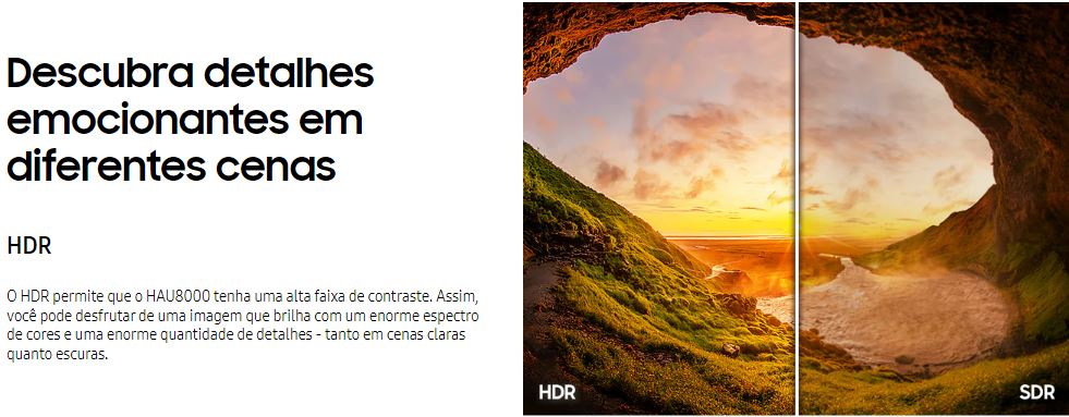 O HDR permite que o HAU8000 tenha uma alta faixa de contraste. Assim, você pode desfrutar de uma imagem que brilha com um enorme espectro de cores e uma enorme quantidade de detalhes - tanto em cenas claras quanto escuras.