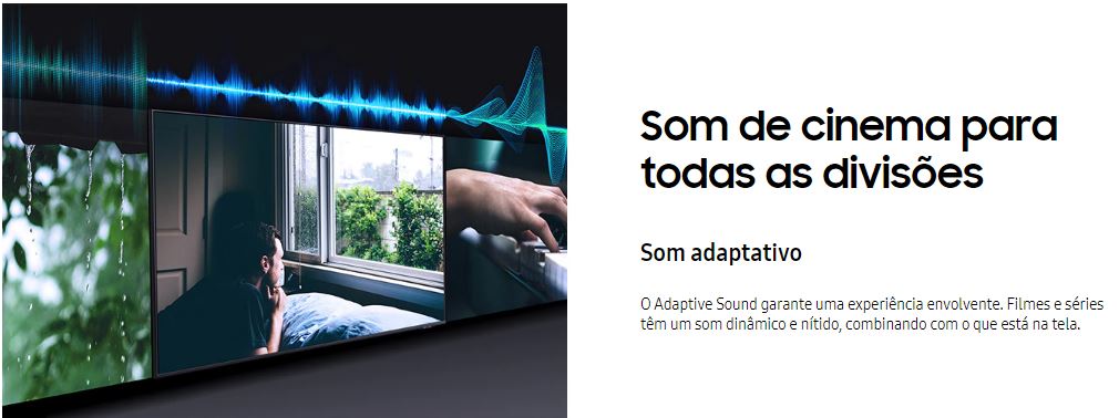 O Adaptive Sound garante uma experiência envolvente. Filmes e séries têm um som dinâmico e nítido, combinando com o que está na tela.