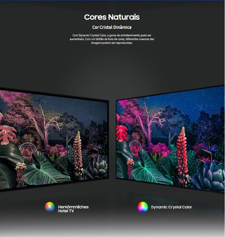 Com Dynamic Crystal Color, a gama de entretenimento pode ser aumentada. Com um bilhão de tons de cores, diferentes nuances das imagens podem ser reproduzidas.