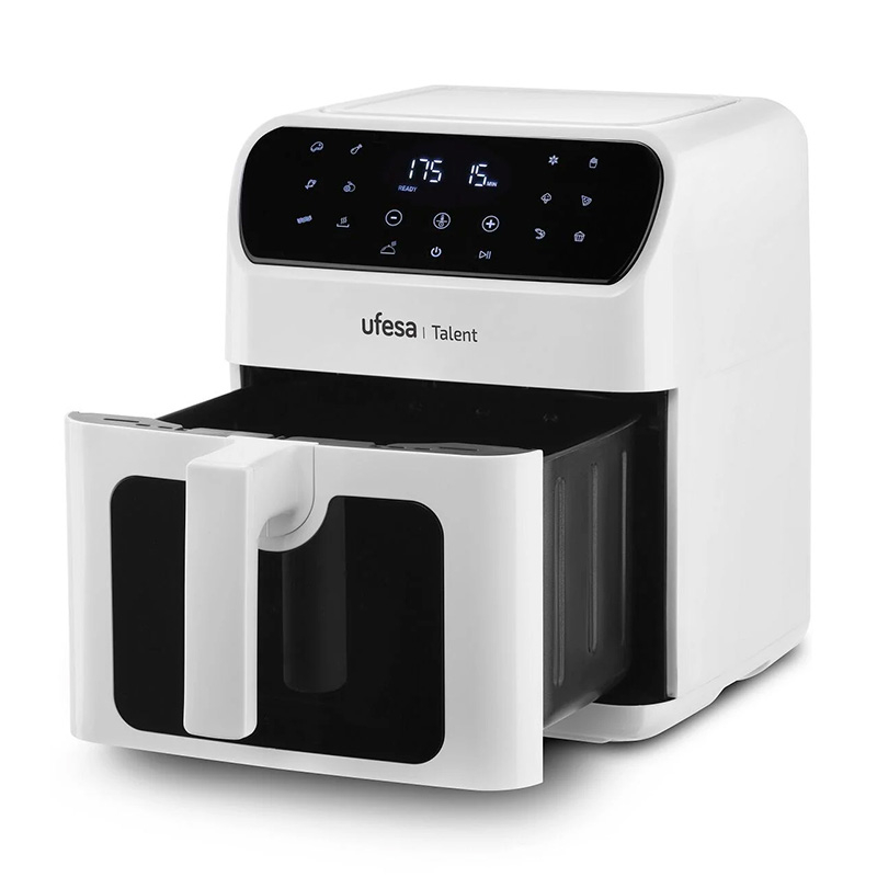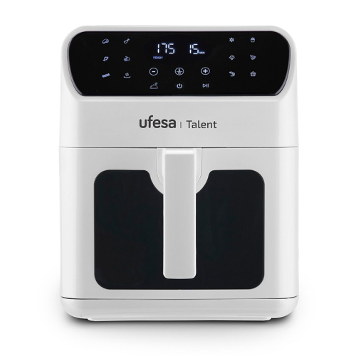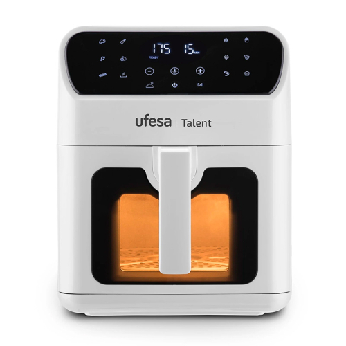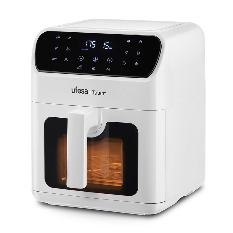 A fritadeira a ar Talent tem uma capacidade de 6,5 L, perfeita para famílias de até cinco pessoas. O design da cuba possui uma janela com uma luz interior que lhe permitirá ver o estado da cozedura. O controlo do tempo e da temperatura é digital. Dispõe de um temporizador de até 60 minutos e de um controlo de temperatura de até 200 ºC. Crie as suas receitas com os seus próprios tempos e graus ou escolha um dos treze programas predefinidos: carne, frango, peixe, desidratar, bacon, descongelar, batatas fritas, legumes, piza, marisco, assar, pré-aquecer e manter quente. As suas receitas, agora mais saudáveis, graças à tecnologia 360º de circulação de ar a alta velocidade, ficarão perfeitas e com resultados estaladiços.