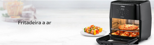 13 programas pré-definidos: Carne, aves, peixe, desidratar, bacon, descongelar, batatas fritas, vegetais, pizza, marisco, assar, pré-aquecer e manter quente