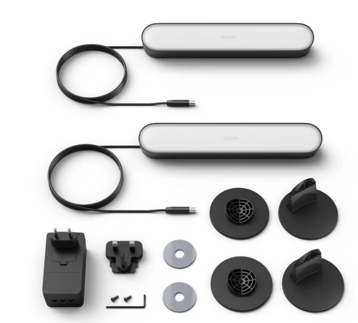 Crie um efeito de iluminação inteligente colorida com o design elegante da barra de luz Play em preto. É fornecida numa embalagem com 2 barras de luz Play e uma fonte de alimentação que permite ligar até três luzes. Pode ser instalada na vertical, na horizontal ou atrás da sua TV com os suportes incluídos.