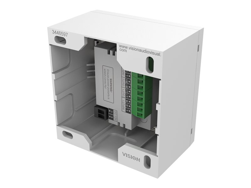 Garantia do fabricante Garantia vitalícia limitada > adaptadores e cabos22390NovoProduto disponívelVISION Techconnect Faceplate Audio Amplifier - LIFETIME WARRANTY - 2 x 25w (RMS @ 8 Ohms) - Two inputs (input 1 duplicated on front) - Remote control - comes on at preset level or resume previous volume - UK surround and backbox included - can drive two p