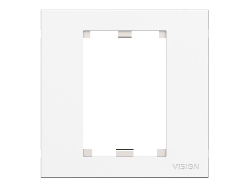 Garantia do fabricante Garantia vitalícia limitada > adaptadores e cabos1190NovoProduto disponívelVISION Techconnect Modular AV Faceplate - LIFETIME WARRANTY - Single-Gang UK surround - frame which accommodates two modules - fits to TC3 BACKBOX1G or TC3 MUDRING1G, or any standard single-gang UK backbox (pattress) - 86 x 86 mm 3.4 x 3.4" - plastic