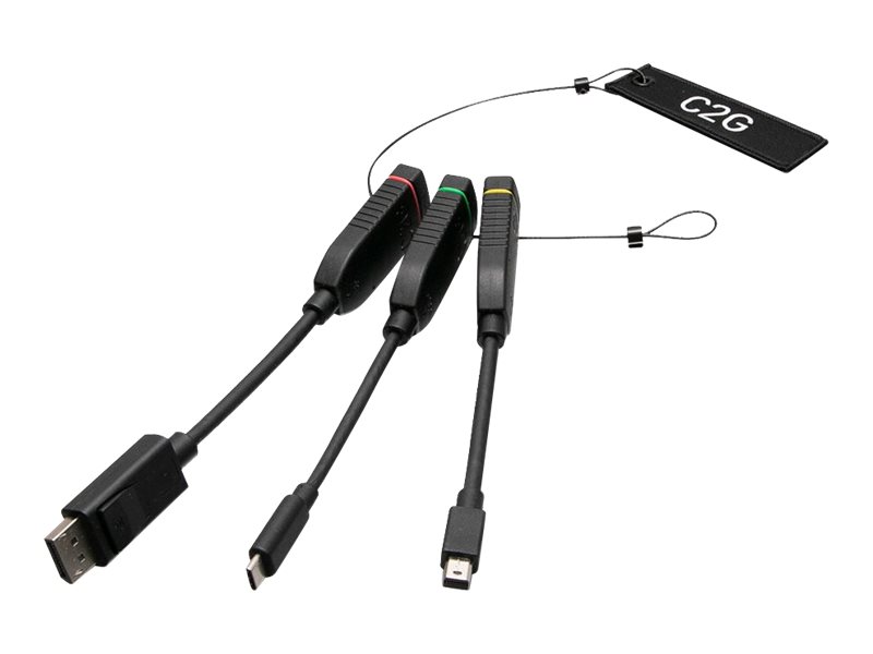 C2G Universal 4K HDMI Dongle Adapter Ring with Color Coded Mini DisplayPort, DisplayPort, and USB-C - Kit de adaptador de vídeo - preto - suporte de 4K