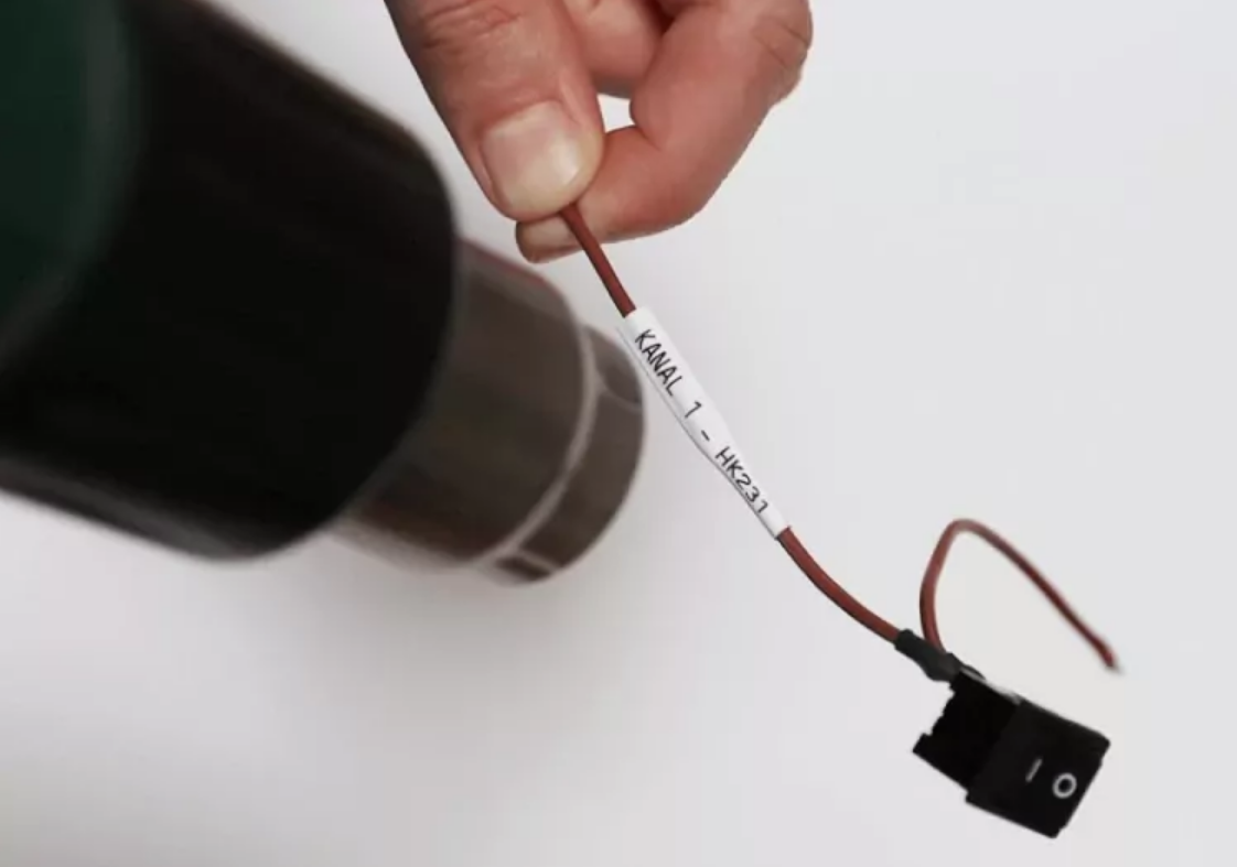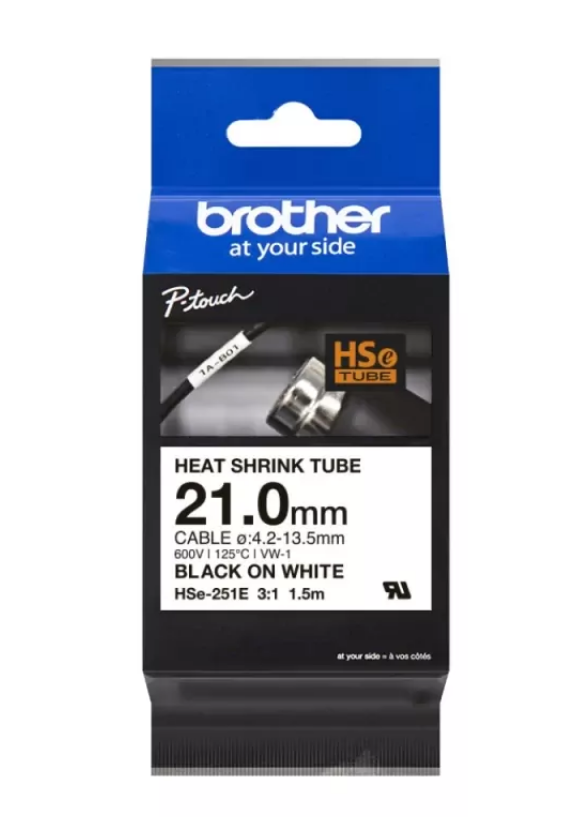 Fita BROTHER Tubo Termo Retrátil c/ texto Preto e fundo Branco 21mm x 1,5m