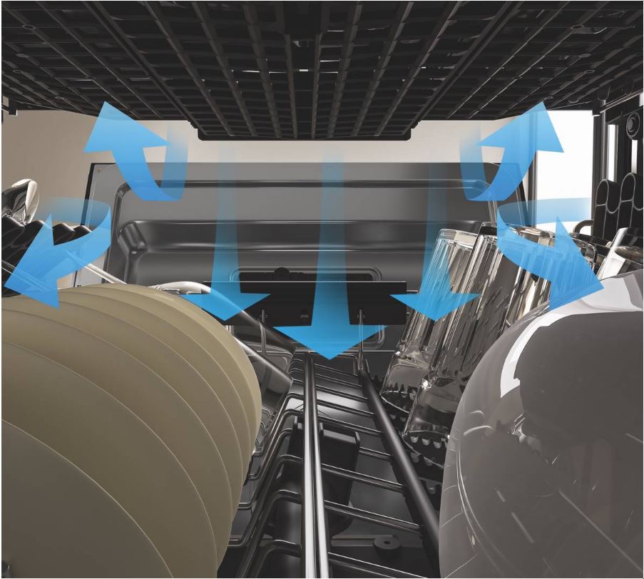 Também assegura ótimos resultados de limpeza graças aos jatos de água integrados que o tornam numa zona de lavagem adicional, em que todos os itens são lavados de forma precisa com o poder da água.