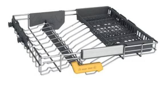 O 3º cesto com SpaceClean é desenhado e tem ângulos de forma perfeita para colocar canecas, taças de cereais e copos altos até 13 cm, sem esforço, para libertar espaço no cesto do meio para itens extra.