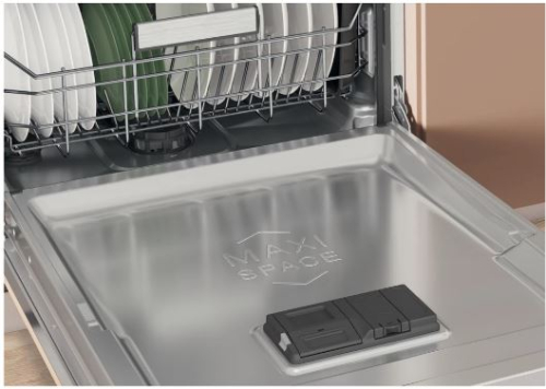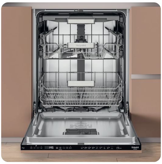 O interior da máquina de lavar loiça Hotpoint, em aço inoxidável, assegura loiça impecável e um interior limpo.