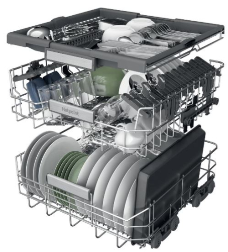 A nova máquina de lavar loiça permite uma flexibilidade máxima de carga com 13, 14 e 15 conjuntos.